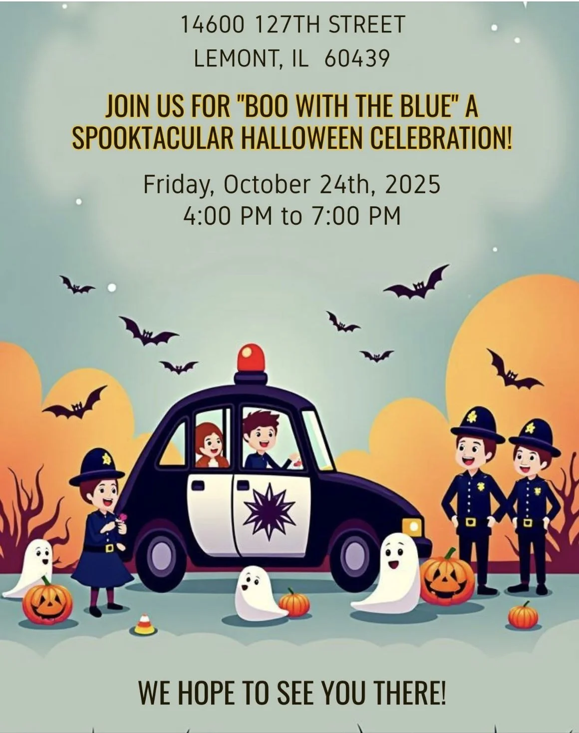 i’LL BE AT THE LEMONT POLICE DEPARTMENT oN fRIDAY oCTOBER 24TH FROM 4PM-7PM- HALLOWEEN EVENT FOR THE KIDS!